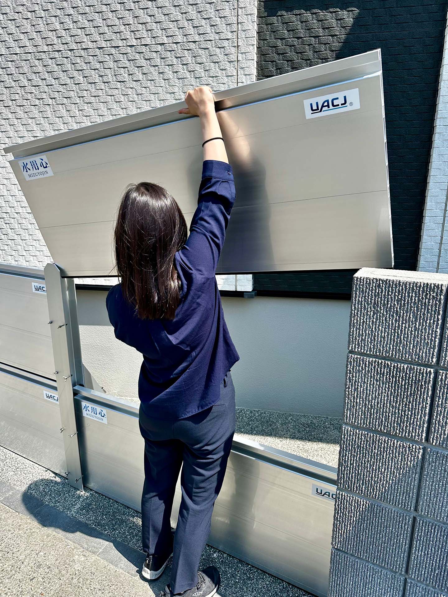 止水板は写真では1段ですが、もう1段積み重ねることができ、今回より2倍の水深まで対応可能です。